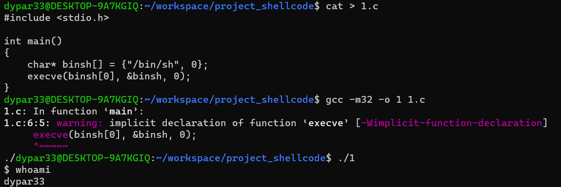 일단 작성할 쉘 코드의 기능을 execve 함수를 사용해 c언어로 작성해보면 다음과 같다.