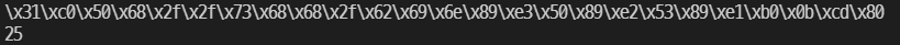 제대로 작동하는 것을 확인했으니 objdump를 통해 각 명령어의 opcode를 추출하고 쓰기 편하도록 \x와 함께 연결해준다면 쉘 코드가 완성된다.