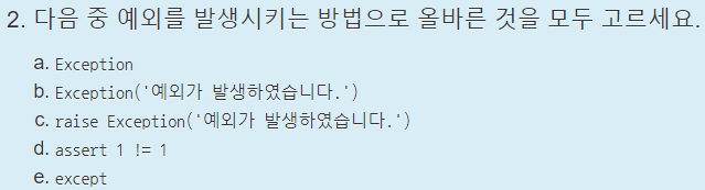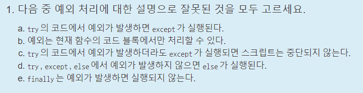 여담으로 d 또한 except, else에서도 예외가 발생하지 않으면 else가 실행된다길래 말이 이상해 틀린 답이라 생각했지만, 결과를 보니 틀린 답이 아니었다.