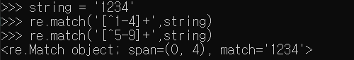 [^<범위>]<+ or *> : [ ] 범위 앞에 ^를 붙여주면 해당 범위가 아닌지를 판단