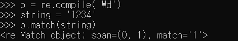 compile 함수는 객체에 패턴을 저장해주는 함수다. 해당 패턴이 필요시 <해당 객체>.match 혹은 search를 써주고 괄호안에 해당 문자열만 적어주면 된다.