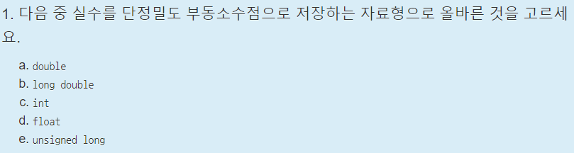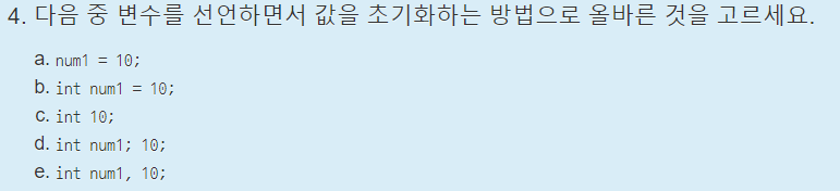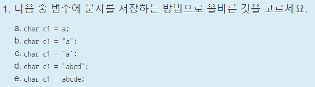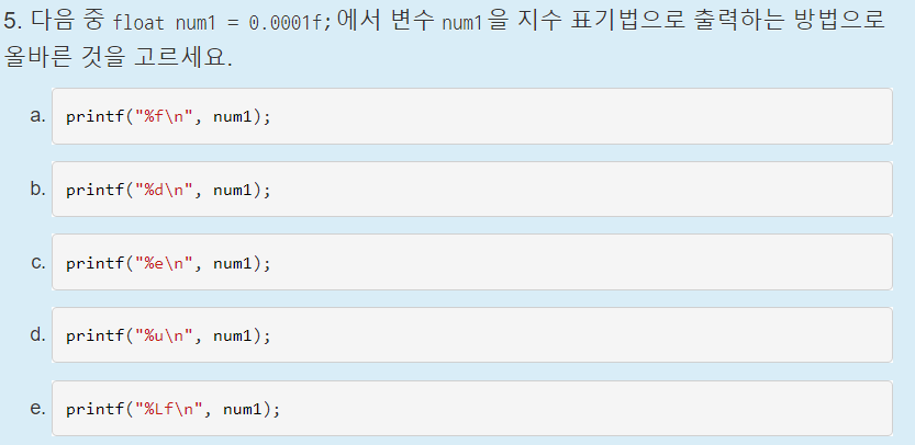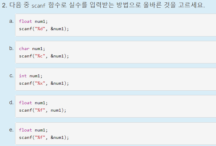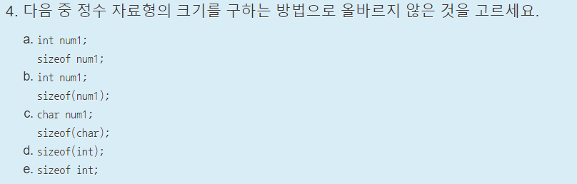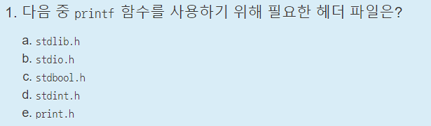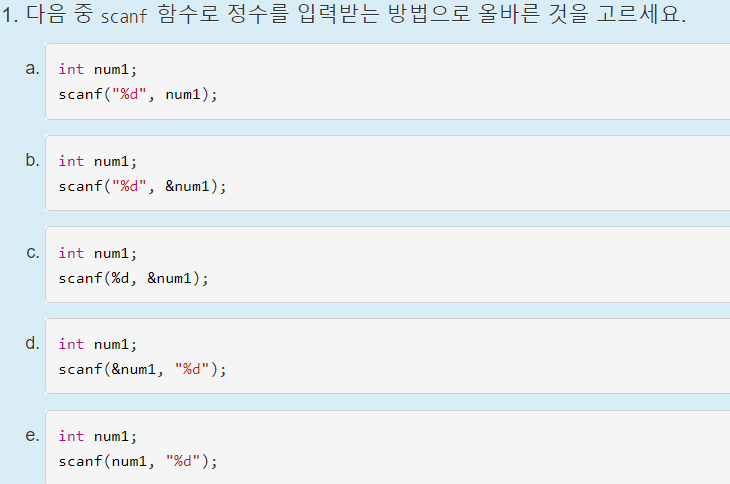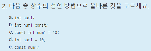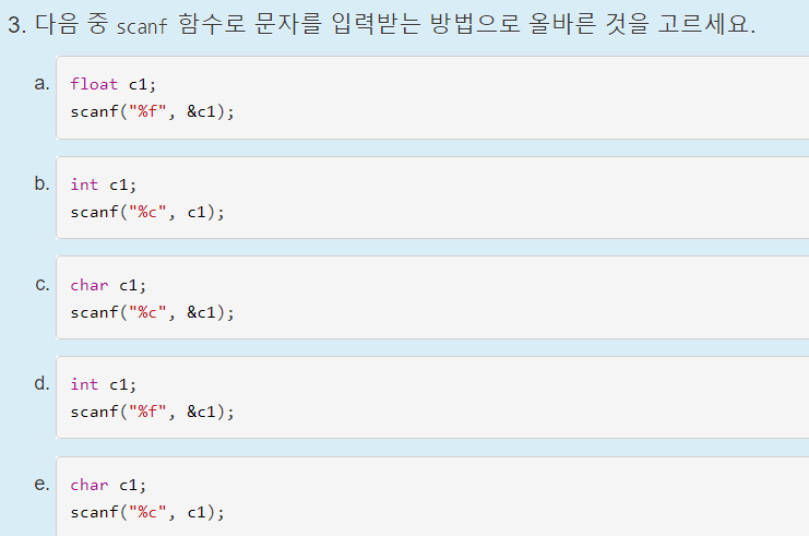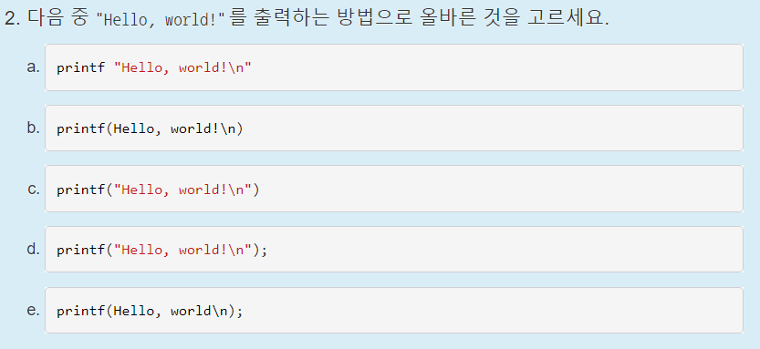 언뜻보면 c와 d중에서 햇갈릴 수 있지만, c언어에서는 ;이 필요하다는 것을 기억해야한다.