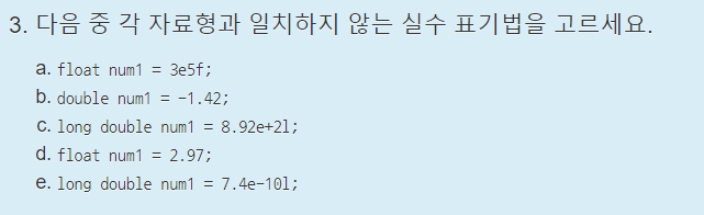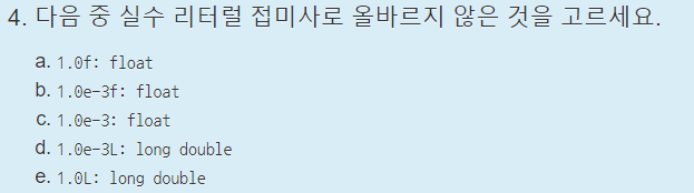 실수 리터럴은 앞서 실수 파트에서 배웠던 것과 똑같다. float 크기는 f나 F를 붙이고, long double 크기는 l 또는 L, 지수 표기법은 e, E로 하면된다.