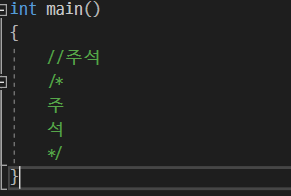 주석은 파이썬과 똑같다. 실행에 영향을 주지 않는 부분을 뜻한다. 파이썬에서는 주석을 #, """ """를 사용했지만, c언어나 java, c#, c++등은 //, /* */를 주석기호로 사용한다.