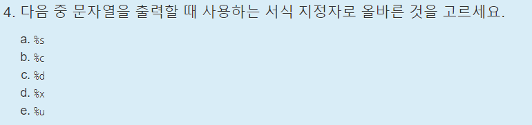 참고로 문자열을 %c 서식 지정자가 아닌 string의 약자 %s를 사용해야한다.
