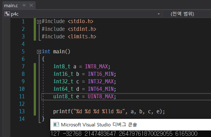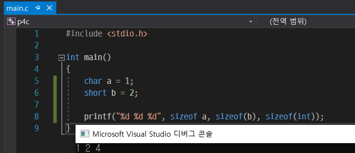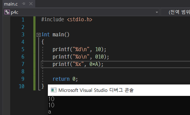 그리고 14행에서 서시 지정자 %d를 사용해서 각각의 변수들을 화면에 출력해주는데, 이때 이 서식 지정자 %d는 파이썬에서의 %d와 똑같이 %d 부분을 정수형 값으로 바꿔준다.