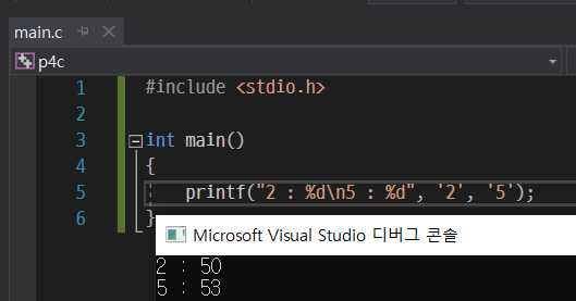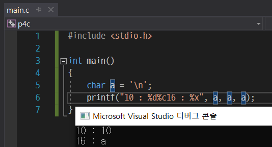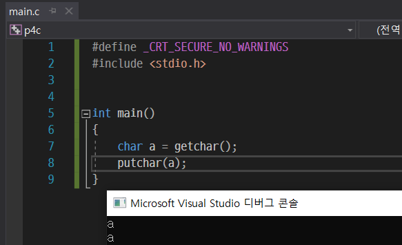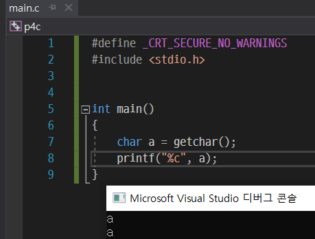 이 putchar를 써준다면 서식 지정자를 써줄 필요없이 변수 하나만 적어서 문자를 출력할 수 있다.