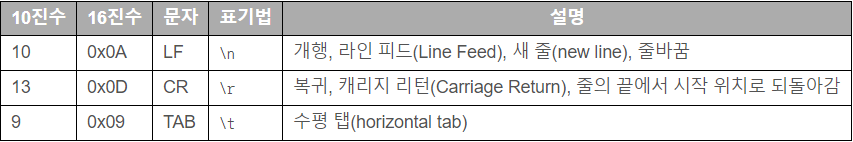 문자열 뒤쪽에 보면 \n이 붙어 있는 것을 볼 수 있는데, 이 \n은 파이썬과 똑같이 개행의 역할을 해준다.