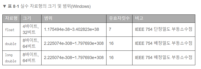 float, double : 실수(각각 저장할 수 있는 소수점이 다름)