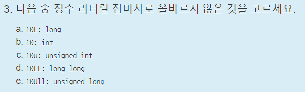 e : 10ULL은 unsigned long long이다. X
