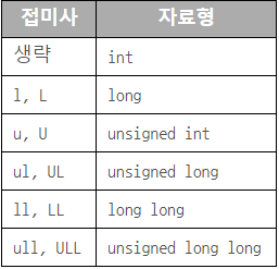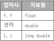 또한 리터럴에 L, F 같은 접미사를 붙여 값의 크기를 명확하게 표현할 수 있다.