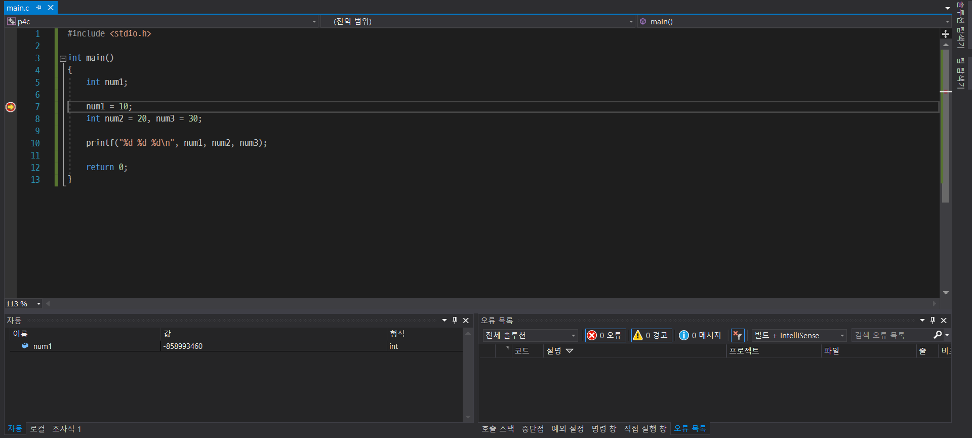 참고로 한 프로젝트에 main 함수가 여러 개일 경우 컴파일 오류가 뜬다.