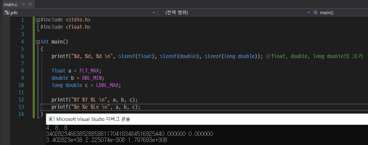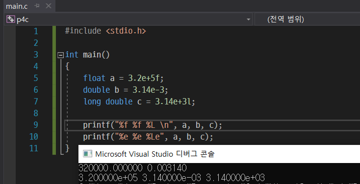 4.900000e-302는 그대로 써주고 뒤에 L만 붙여줬는데, 이미 long double형으로 서식 지정자를 사용했기 때문에 굳이 0을 안쓰고 4.9e-302만 써줘도 출력할 때 자동으로 0을 붙여서 출력해준다.