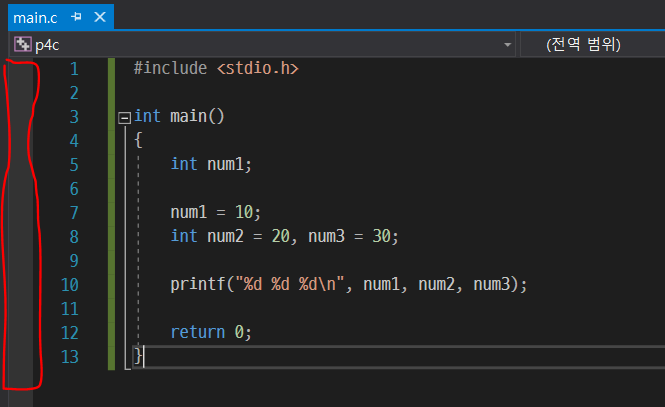 c언어 코드를 짤 때 중요한 것은 각 명령이 끝날 때 ';'를 꼭 써줘야한다. 파이썬 같은 경우 ';'은 한 줄에 여러개의 명령을 입력할 때만 써줬지만, c언어는 ;로 각 명령을 구분한다.