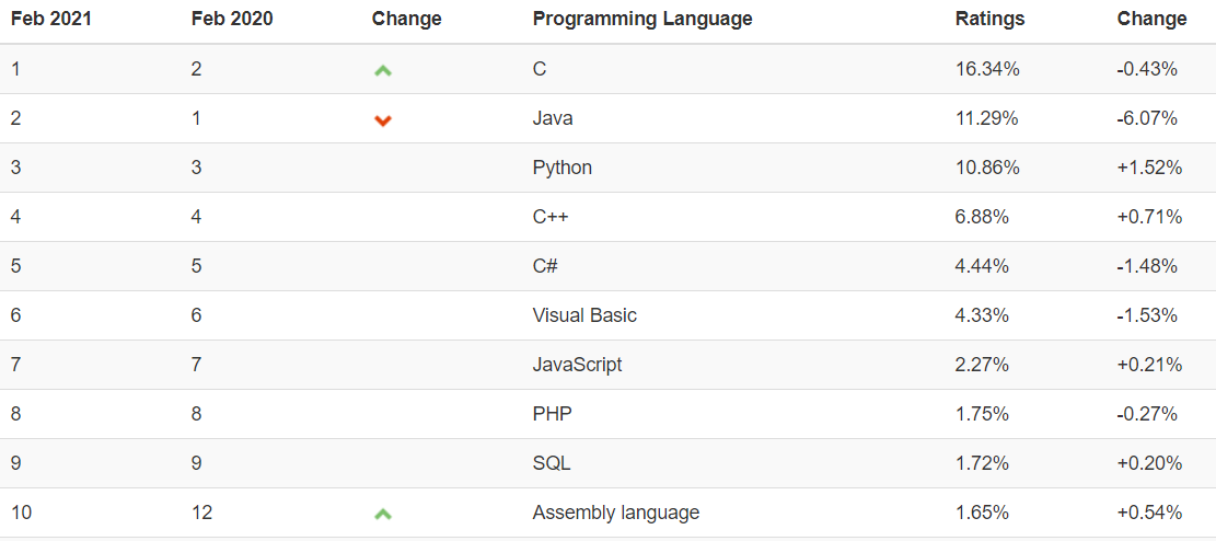 하지만 운영체제의 커널, 임베디드 등이 c언어로 구현 됐다는 사실을 아니, c언어가 왜 1위를 차지하고 있는지 이해가 간다. Assembly가 10위?!