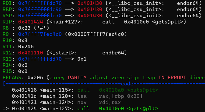 소스코드를 확인해보면 마찬가지로 gets 함수로 입력을 받아 bof 취약점이 발생한다. 이번 문제는 flag를 출력해주는 함수가 따로 존재한다.