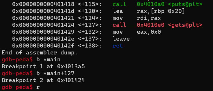 gdb를 통해 ret와 입력 값이 저장되는 buffer의 스택 주소를 구했다.