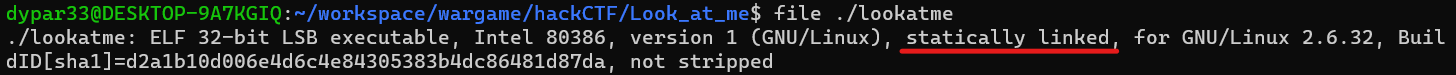 file 명령어로 확인해보면 statically linked(동적 링크) 통해 이 바이너리가 static linking 방식인 것을 알 수 있다.
