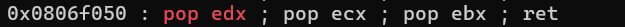 pppr = 0x0806f050 # pop edx; pop ecx; pop ebx; ret