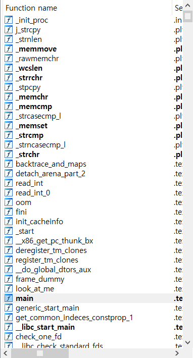 ida로 바이너리를 열어보면 함수가 엄청 많이 존재하는 것을 볼 수 있다. 이는 이 바이너리가 static linking 방식으로 컴파일되서 그렇다.