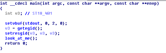 다시 ida로 돌아와서 main 함수를 확인해보면 main 함수에서는 단순히 look_at_me 함수만 호출하는 것을 알 수 있다.