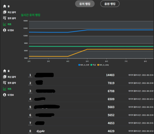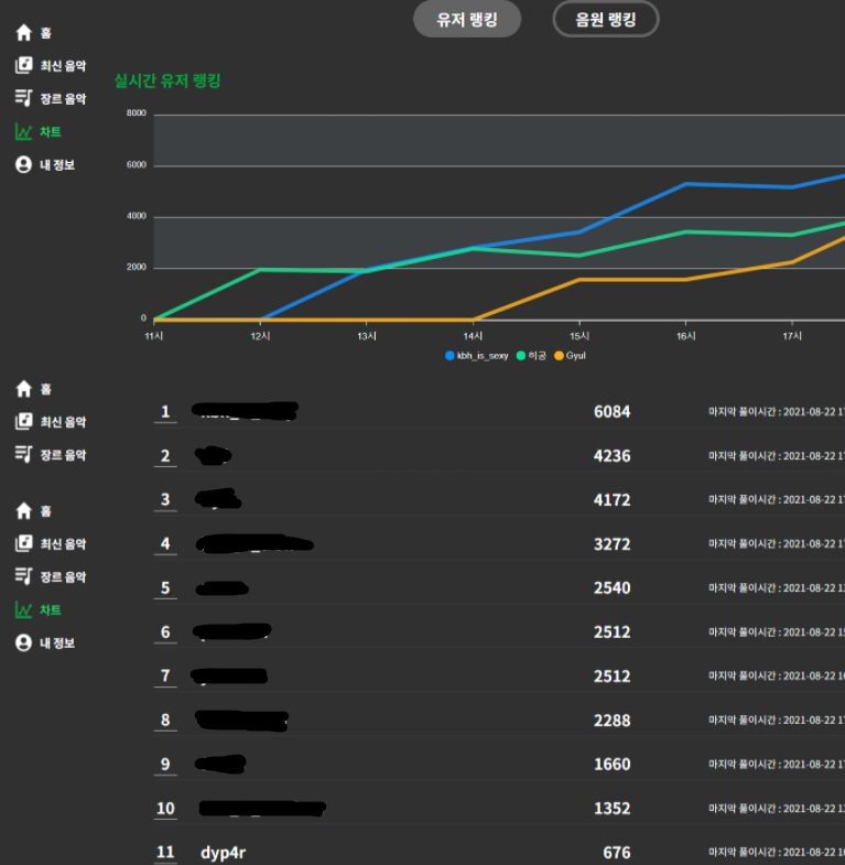이번 대회는 음원차트 컨셉으로 진행됐는데, 홈페이지 ui도 그렇고 푼 사람 명단도 그렇고 정말 색다르고 재밌었던 대회 같았다.