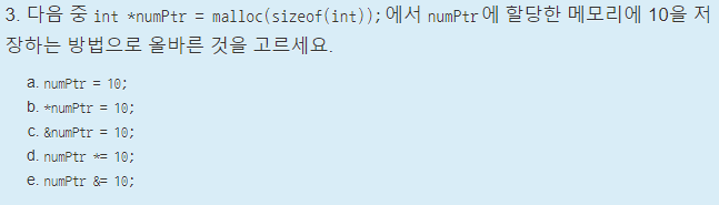 malloc 함수로 numPtr1, numPtr2에 각각 4바이트, 8바이트 만큼 메모리를 할당하는 것이 목적이다.