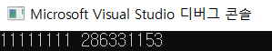 힙에 확보된 4바이트 크기의 메모리에 memset 함수로 4바이트 만큼 0x11로 값을 넣어줬으니 해당 메모리는 11 11 11 11이 된다. 따라서 16진수 11111111과 10진수 286331153이 출력된다.
