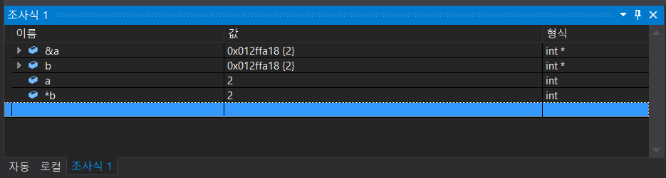 *b = 2; // 포인터 b를 역참조해 해당 주소의 값을 2로 변경