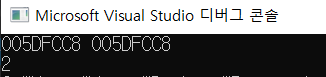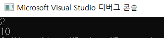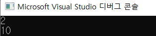 첫 줄에는 p[1]의 요소(arr[1])인 2가, 두 번째 줄에는 10으로 바뀐 p[3]의 요소(arr[3])가 출력됐다.