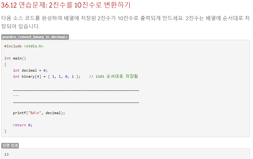 int bin[20] = { 0, }; // 2진수 배열 변수