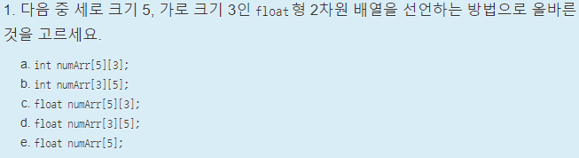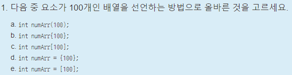 int arr[5] = { 1, 2, 3, 4, 5 }; // 크기가 5인 int형 배열 선언 및 초기화