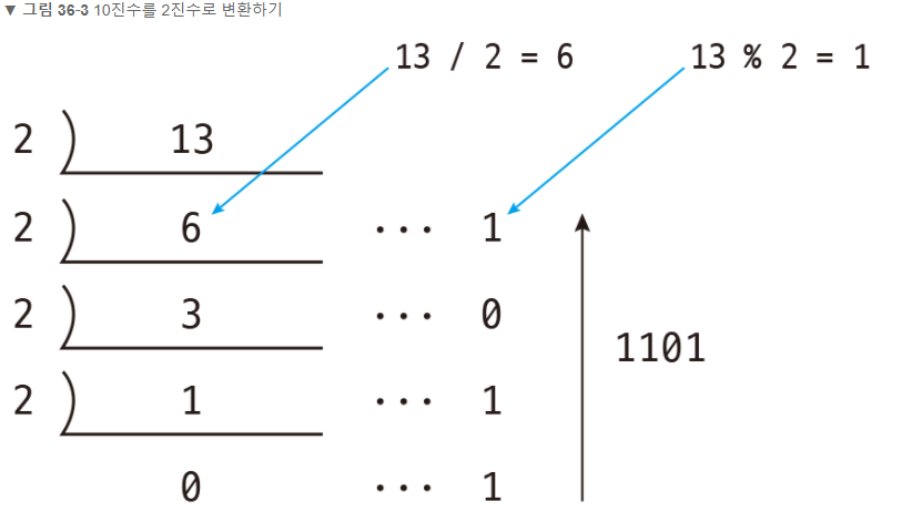 // 10진수를 2로 나눴을 때의 몫이 0일 경우(더 이상 나눠지지 않는 경우) 반복 종료