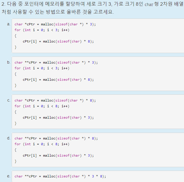 <자료형> **<포인터 명> = malloc(sizeof(<자료형> *) * <세로 크기>);