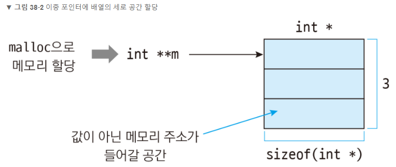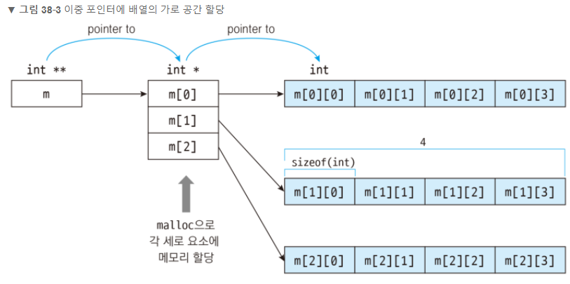 // 가로 크기 * 8만큼 메모리 확보 후 m[i][j]에 그 주소를 저장