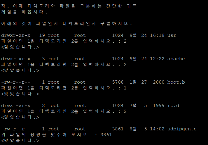위는 ls -l 명령어를 사용했을 때 출력되는 파일 정보를 바탕으로 한 퀴즈다.