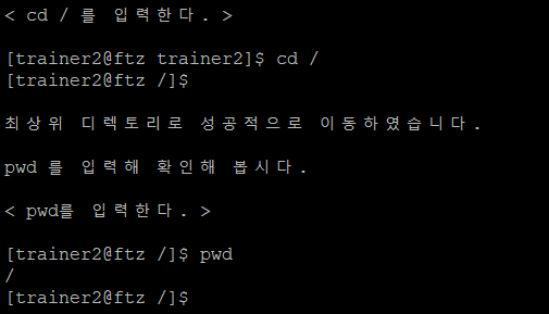 pwd 명령어를 사용해보면 현재 디렉토리가 home 디렉터리의 trainer2인 것을 알 수 있다.