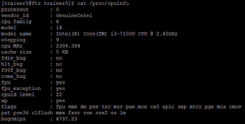 cat으로 /proc/cpuinfo의 내용들을 출력하면, 서버의 사양들을 알 수 있다.