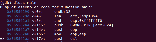 현재 eip는 0x565562aa를 가리키고 있고