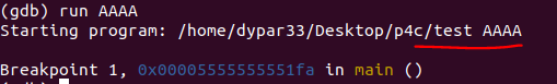 gdb 내부에서 프로그램을 실행하는 명령어다. 프로그램이 실행할 때 인자를 받아야한다면 [매개 변수] 자리에다가 인자를 입력하면 되고, 만약 없다면 그냥 run만 적으면 된다.