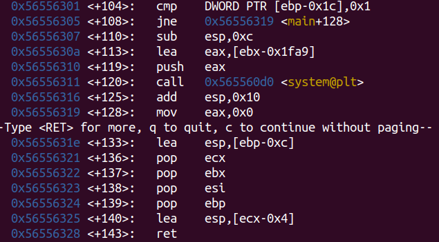 다음으로 분기부분을 보면 ebp-0x1c(v5)의 값이 1과 같는지 검사하고 같지 않다면 +128로 점프, 같다면 syscall을 이용해 /bin/bash 쉘을 실행하는 것 같다.