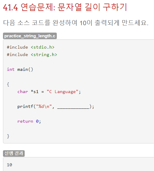문자열의 길이를 구하는 것이 목적이다. 빈칸에 문자열의 길이를 구해주는 strlen 함수를 넣어주면 될 것 같다.