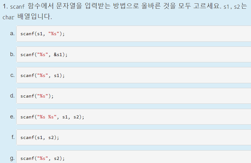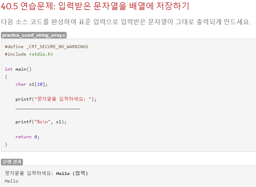 scanf("%s", s1); // 서식 지정자 %s로 s1에 문자열을 입력 받음