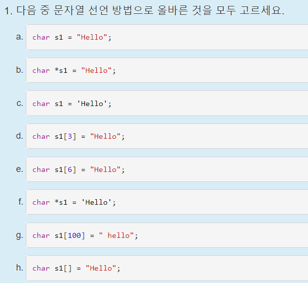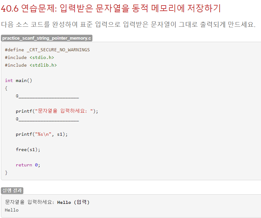 1번 칸에 동적으로 할당받는 char형 포인터 변수를 생성하면 될 것 같고, 2번 칸에는 scanf, %s, s1으로 입력 받는 코드를 작성하면 될 것 같다.