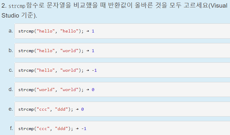 참고로 리눅스 OS에서는 strcmp 함수가 1, 0, -1을 반환하는게 아닌 아스키 코드 값의 차이를 출력한다고 한다.