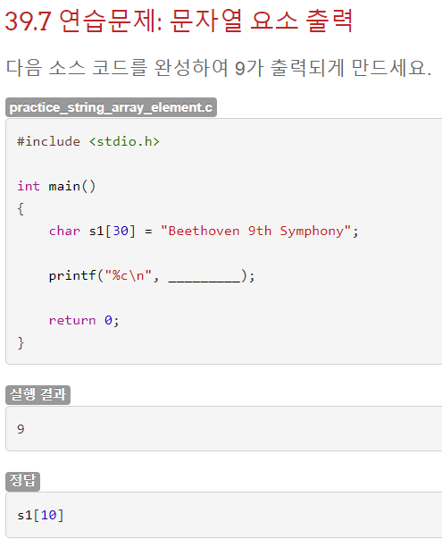printf("%c\n", s1[10]); // 인덱스 10의 요소 출력