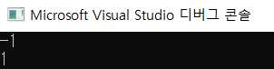 a에 저장된 문자열이 b에 저장된 문자열 보다 아스키 값이 작으므로 첫 줄에는 -1이, 두 번째 줄은 순서를 바꿔서 비교했기에 b의 문자열이 더 크기 때문에 1이 출력됐다.