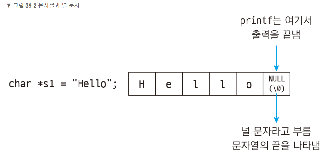 항상 문자열은 맨 마지막에 NULL이 붙는데 이 NULL이 문자열의 끝을 나타낸다. 그래서 printf, %s로 문자열을 출력할 때 문자를 계속 출력하다가 NULL에서 출력을 끝내서 문자열을 출력하는 것이다.