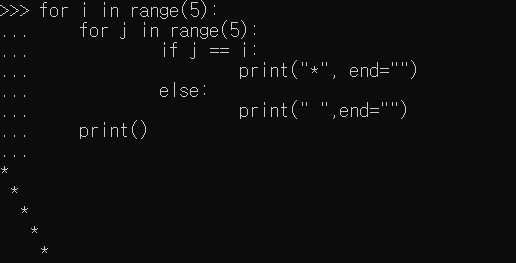 4행~7행 : i가 j보다 작다면 공백 출력, 아니라면 *을 출력한다.