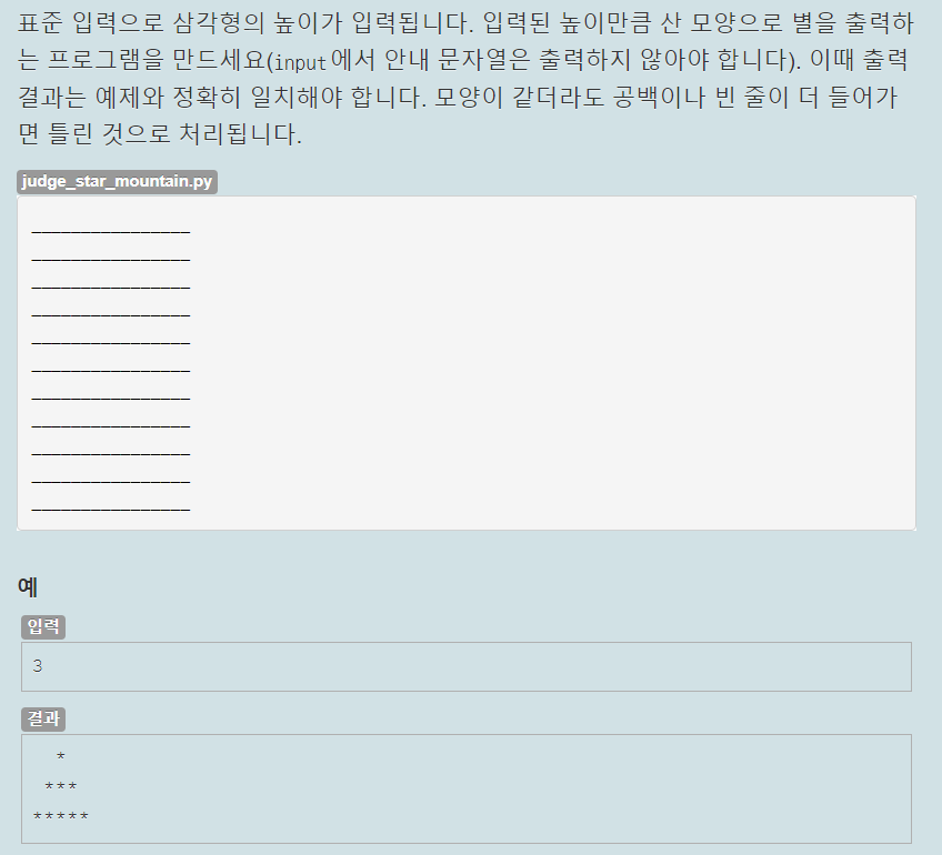 입력으로 높이를 받고 높이만큼 산 모양으로 별을 출력하는 것이 목적이다.